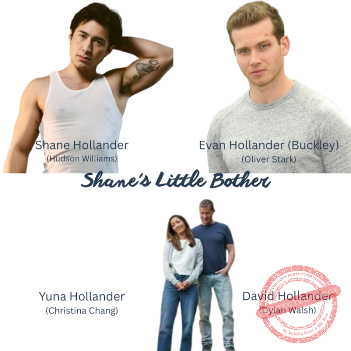 Shane Hollander (Hudson WIlliams), Evan Hollander (Buckley) (Oliver Stark), Yuna Hollander (Christina Chang), David Hollander (Dylan Walsh)